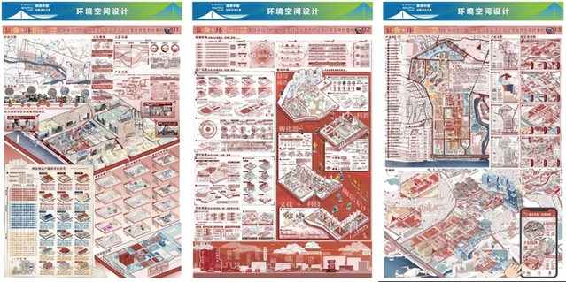 由教授薛名辉、武悦指导,硕士生张雪滢、冯时瑶、刘宇飞完成的“陶野之城——基于空间三元辩证法理论的浮梁大石口片区村落改造设计”项目和由教授赵志庆、副教授戴锏指导,硕士生林榕、邱月妍、郭帅言完成的“罐头环能一一广州鹰金钱工业遗产旧址多元共生系统重构”项目荣获环境空间设计赛道一等奖。